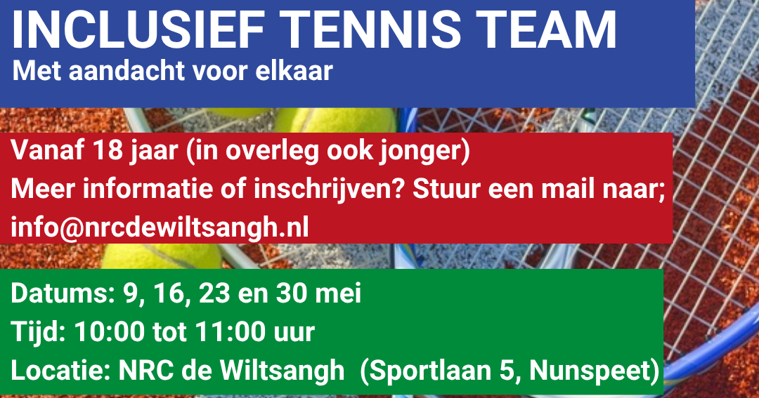 Bij NRC de Wiltsangh geloven we dat tennis voor iedereen toegankelijk moet zijn. Daarom starten zij in mei met een inclusieve tennislessen.